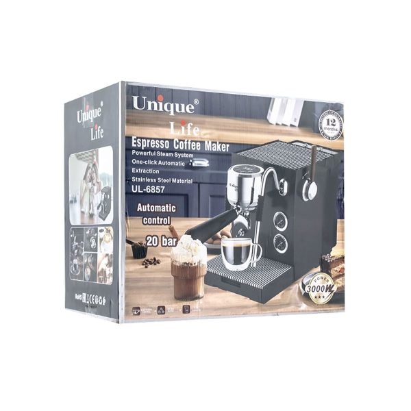 جنس بدنه این محصول از استیل ضد زنگ میباشد . توان المنت این محصول 1350 وات و فشار بخار 20 بار میباشد . کرمای عصاره این محصول بالا بوده و تجربه ای نزدیک به قهوه های کافه دارد . نازل بخار این دستگاه قابل چرخش بوده که کار با آن را بسیار راحت میکند .طراحی این محصول بسیار زیبا میباشد . قسمت بالای دستگاه برای گرم نگه داشتن لیوان قهوه مناسب میباشد .