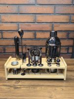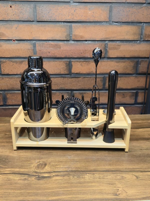 این ست شامل یک عدد شیکر ، یک عدد اسنرینر ، یک عدد مادلر ، یک عدد بار اسپون ، یک عدد گیره یخ ، یک عدد درب بازکن چند کاره ، یک عدد جیجر ، یک عدد شات استیل ، دو عدد درب پوش ، سه عدد آرام ریز میباشد . رنگ این محصول دودی و جنس تمامی قطعات استیل ضد زنگ میباشد .